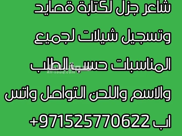 شاعر قمه في الجزاله لكتابه القصائد وتسجيل الشيلات حسب طلبكم بالاسم واللحن المطلوب ما عليك هو إرسال الموضوع والتفاصيل واللحن الذي تريد وسوف يتم كتابة القصيده بأقوى واجزل المعاني لأي مناسبه/