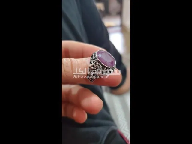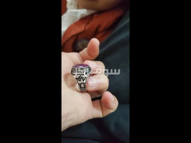 خاتم فضه شغل يد عليه حجر ياقوت هندي