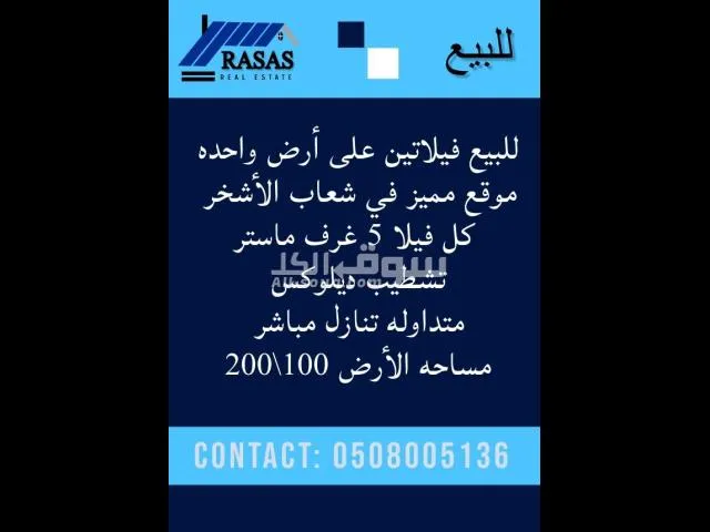 للبيع فيلاتين على ارض واحده في شعاب الاشخر موقع مميز تشطيب ديلو****