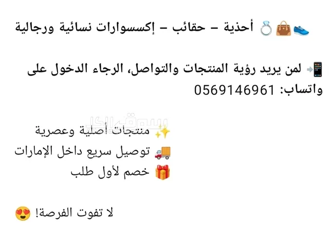 بيع شنط وأحدية وأ****سوارات نسائي ورجالي لرؤية المنتوجات تواصل عبر الواتساب لإرسال الصور