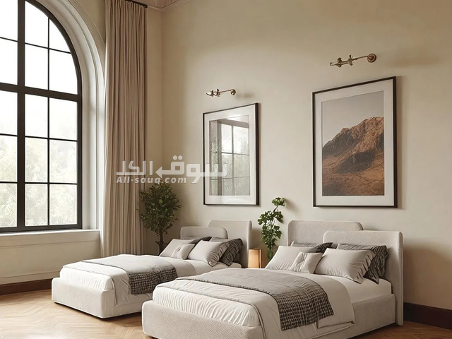 Create a serene and stylish bedroom with the Harmony Twin Bed, a perfect fusion of modern design and cozy comfort. Featuring plush upholstered twin beds with a textured headboard, this set is enhanced by elegant ceiling track lighting and a unique wave-patterned rug. The soft neutral tones and flowing wall panel design bring a calming ambiance, making it ideal for shared or guest spaces.