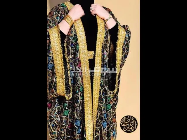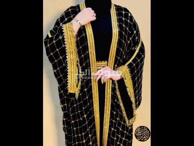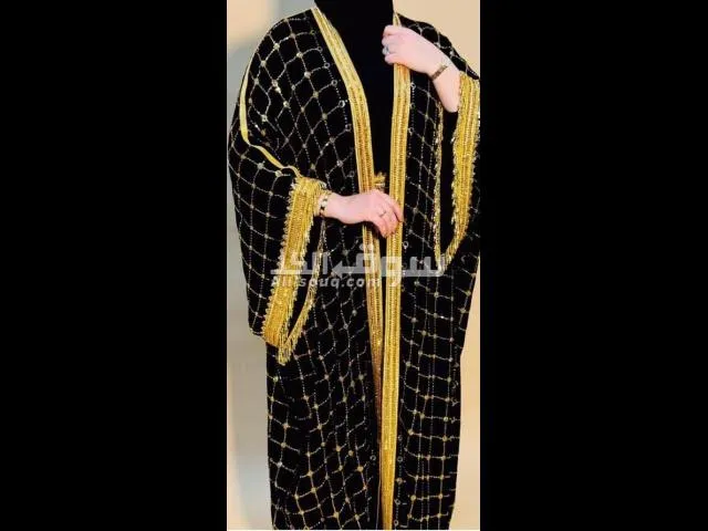 مشغول كلبدون ذهبي هندي مع ستراس بللون الذهبي ويرزقك هاند ميد الشغل على طول البشت من الامام ومحيط الاكمام ومحيط حزام الخصر